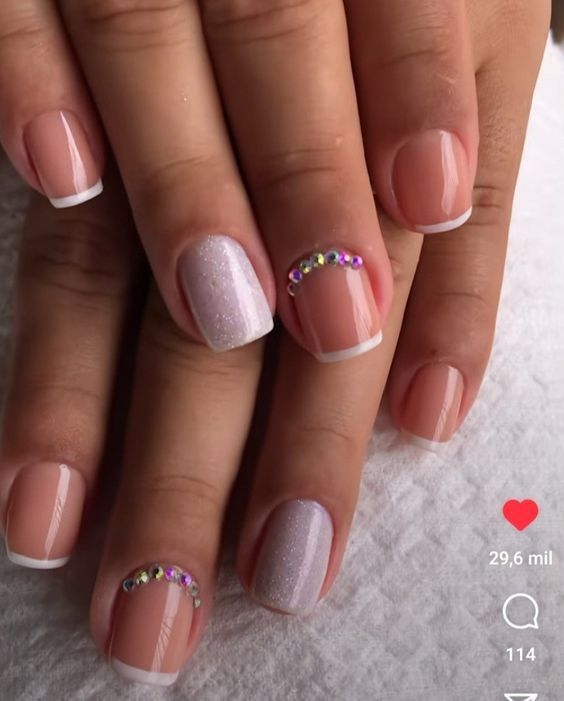 Nossa lista começa com a clássica francesinha de brilho e strass. Sim! A opção é um charme só e combina com qualquer comprimento. O efeito é encantador.