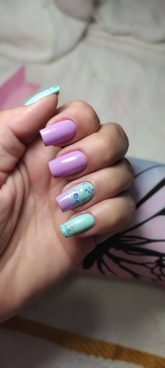 E por falar em combinação de cores, aposte nas unhas mescladas com lilás ou roxo. Assim, o resultado fica super charmoso.