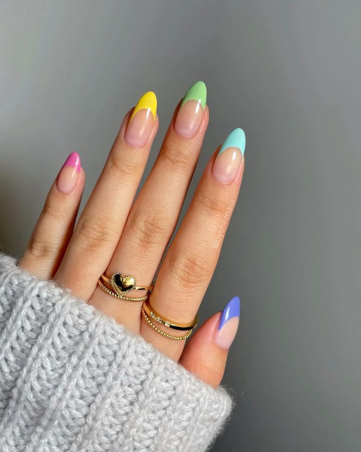 Outra aposta forte são as francesinhas reinventadas, com pontas coloridas em vez do tradicional branco. A ideia é misturar cores alegres e deixar o visual mais divertido e descontraído.