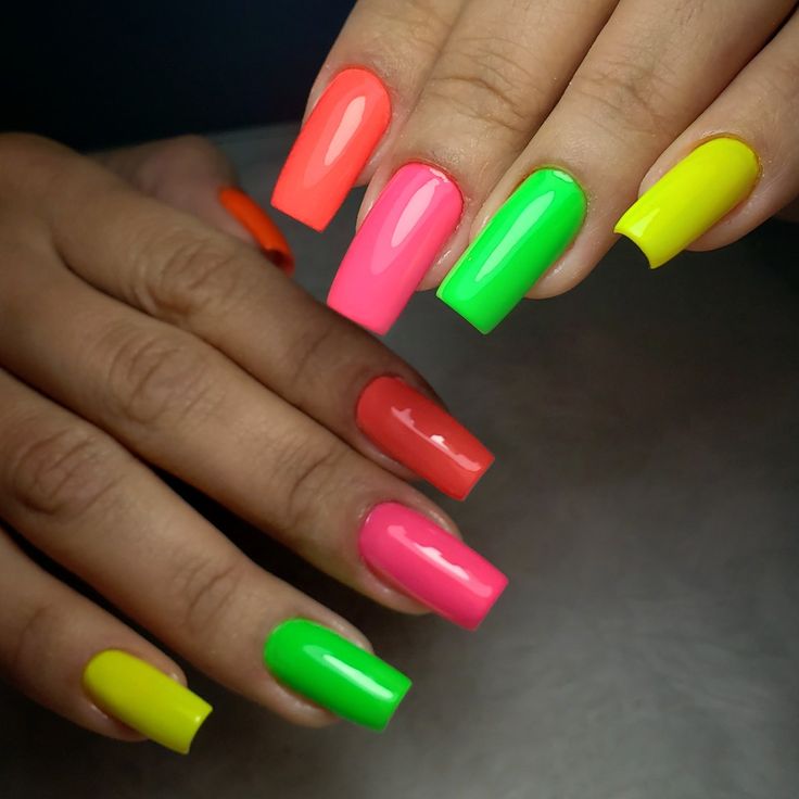 Tons como laranja e rosa, azul e roxo ou até combinações neon garantem destaque e deixam as unhas cheias de personalidade.
