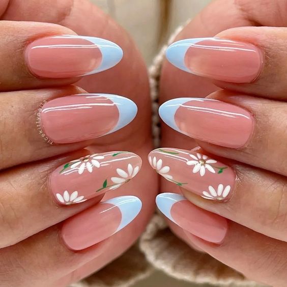Engana-se quem pensa que as flores não podem ser adicionadas as unhas decoradas de Páscoa. Por representarem a renovação e crescimento, as estampas floridas se encaixam bem no momento. Escolha uma base clara para compor a nail art e desenhe flores coloridas.
