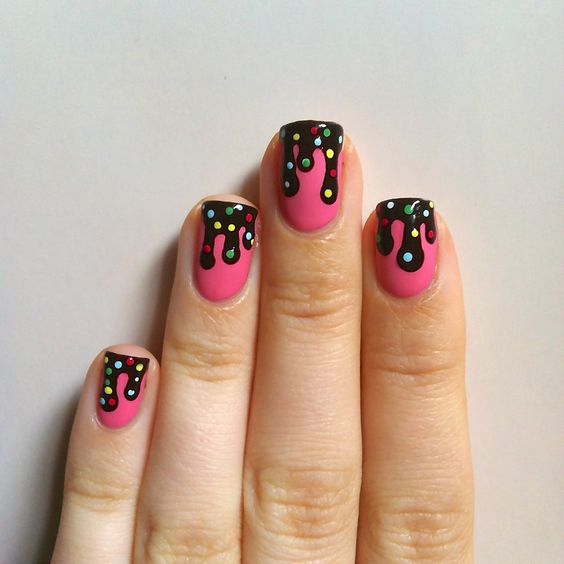 Característica da época mais gostosa do ano, as unhas de chocolate está no top 6 de inspirações para a Páscoa. A base, por exemplo, pode vir com a cor que você desejar e a ponta, com efeito “derramado” de marrom para representar o doce. Pontinhas coloridas ainda podem ser adicionadas a nail art a fim de incrementar ainda mais.