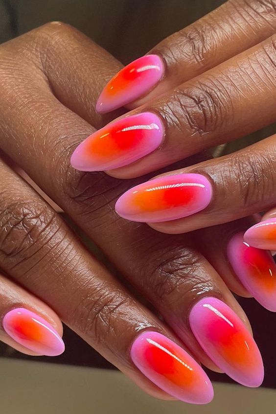 As tendências também mostram o blush nail como uma das unhas decoradas que estão bombando este ano. No entanto, diferente de outros anos, a técnica tem incluído cores vibrantes, tanto para o centro como o entorno da unha. Um verdadeiro match.