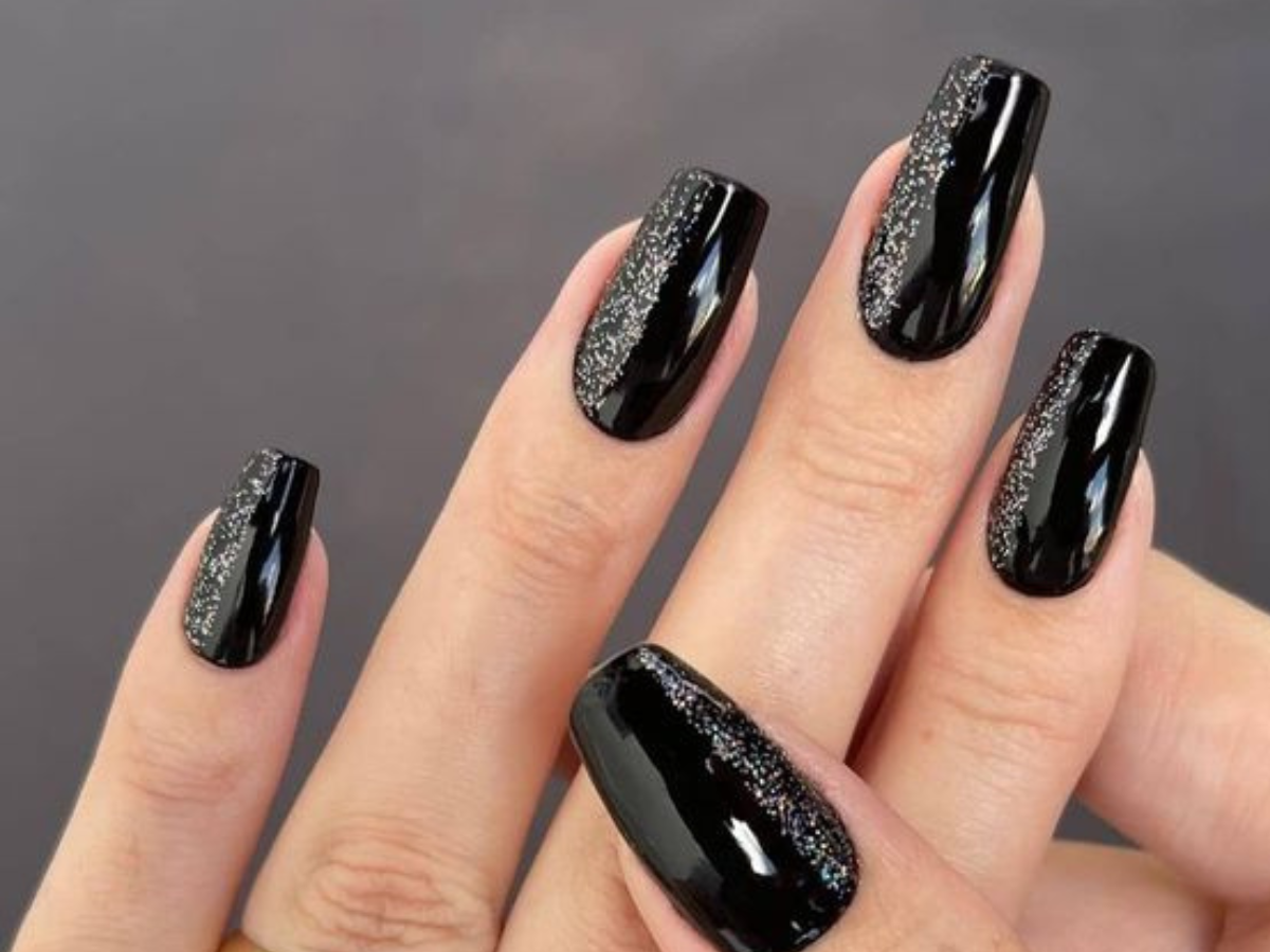 1. Unhas pretas com glitter encapsulado