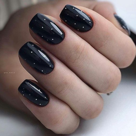 10. Por fim, unhas pretas decoradas com bolinhas ficam incríveis