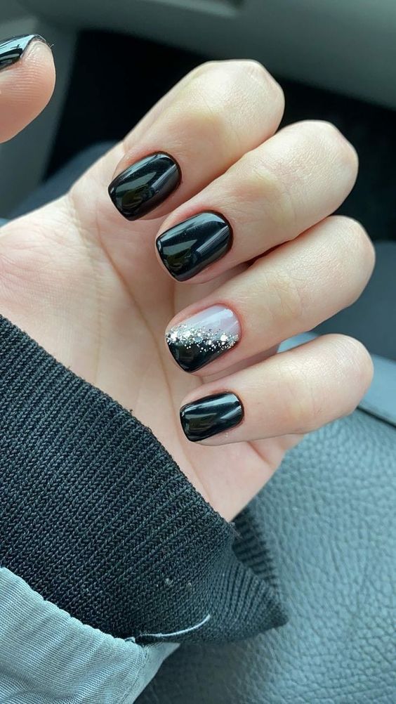 3. Unha preta e um pouco de brilho traz o encanto que a mão precisa