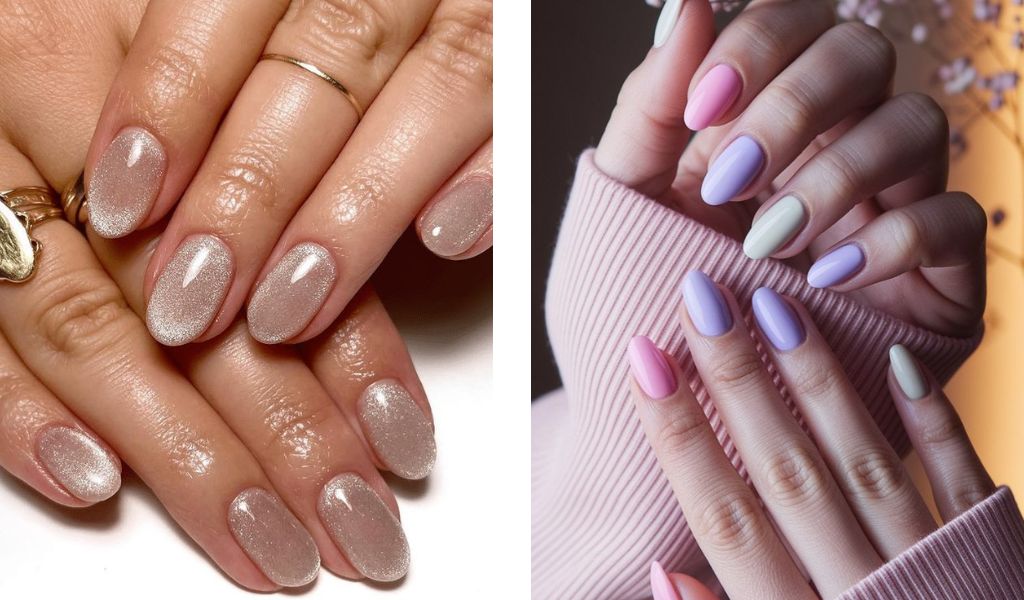 Quem não ama um bom tom pastel? Eles continuam com tudo em 2025, especialmente em unhas redondas. São cores suaves como rosa claro, lilás e menta que trazem frescor e um ar de leveza.
