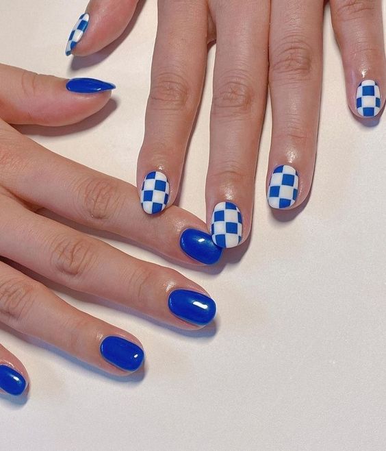 2. Unhas redondas com estampa xadrez estão entre as queridinhas das tendências e são perfeitas para o verão