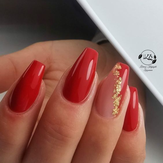5. Unhas vermelhas e douradas