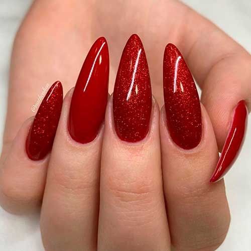 8. Por fim, vermelhas com glitter trazem potência, elegância e muita personalidade