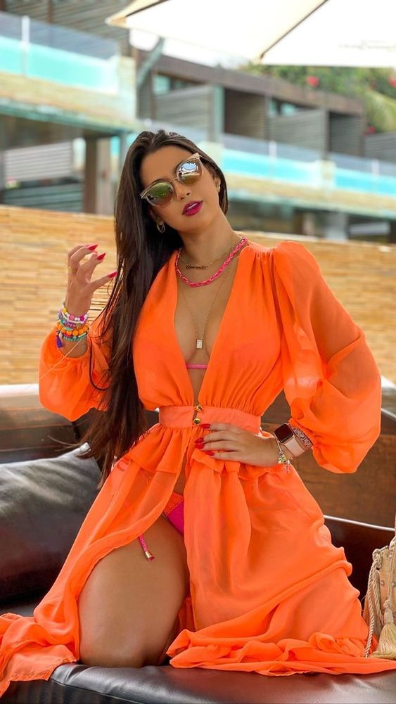 O amarelo e o laranja são duas cores fortes e imponentes, as quais podem compor os looks praianos ou festivos de 2024 no verão, de acordo com os especialistas.
